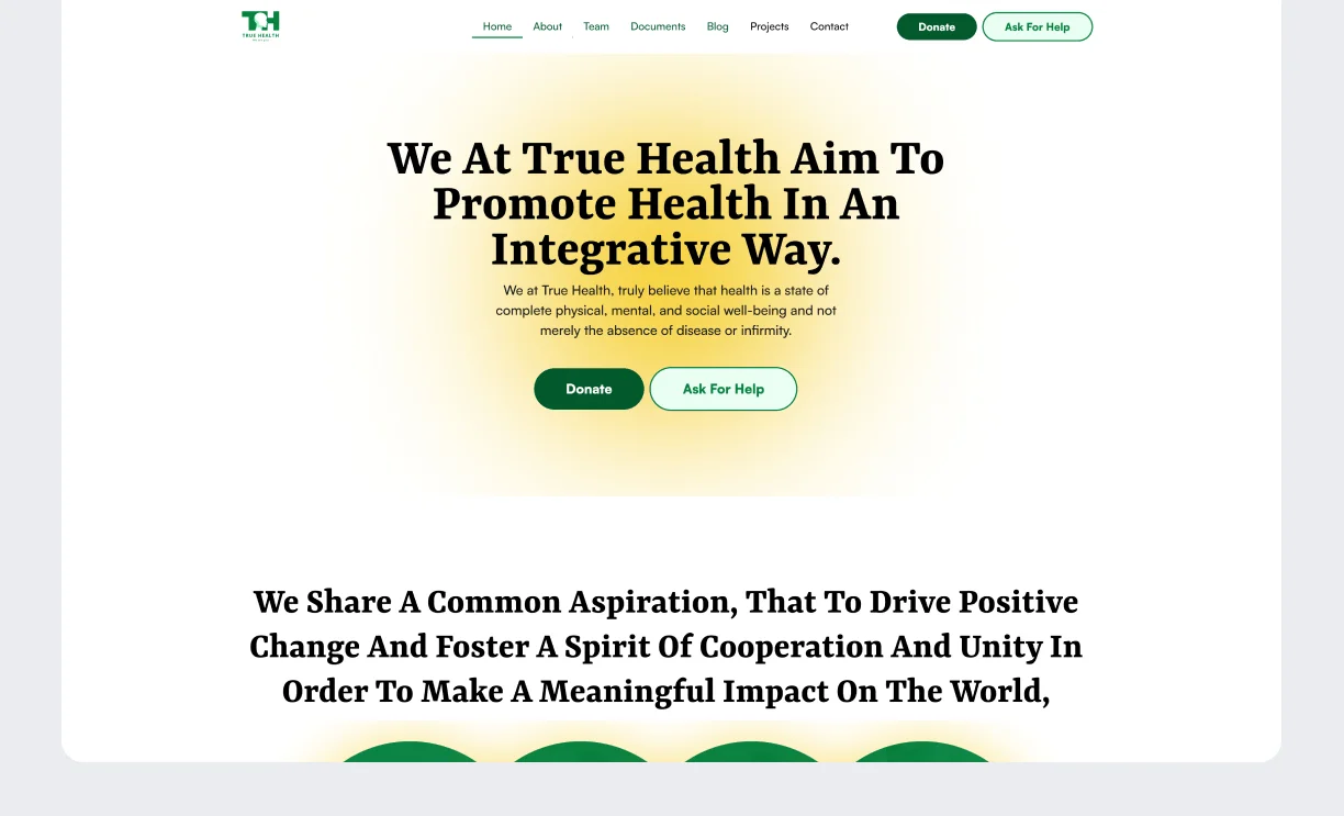The team worked closely with the client to figure out who’s their target audience and what message they wished to communicate on the website. Working with the volunteers associated with the NGO, we started by researching other NGOs' websites working in a similar domain, their branding and what are the key elements they have. With the research and the conversations with the client, we established the main goals for the website, where people could learn about True Health's mission, donate, and sign up for newsletters.