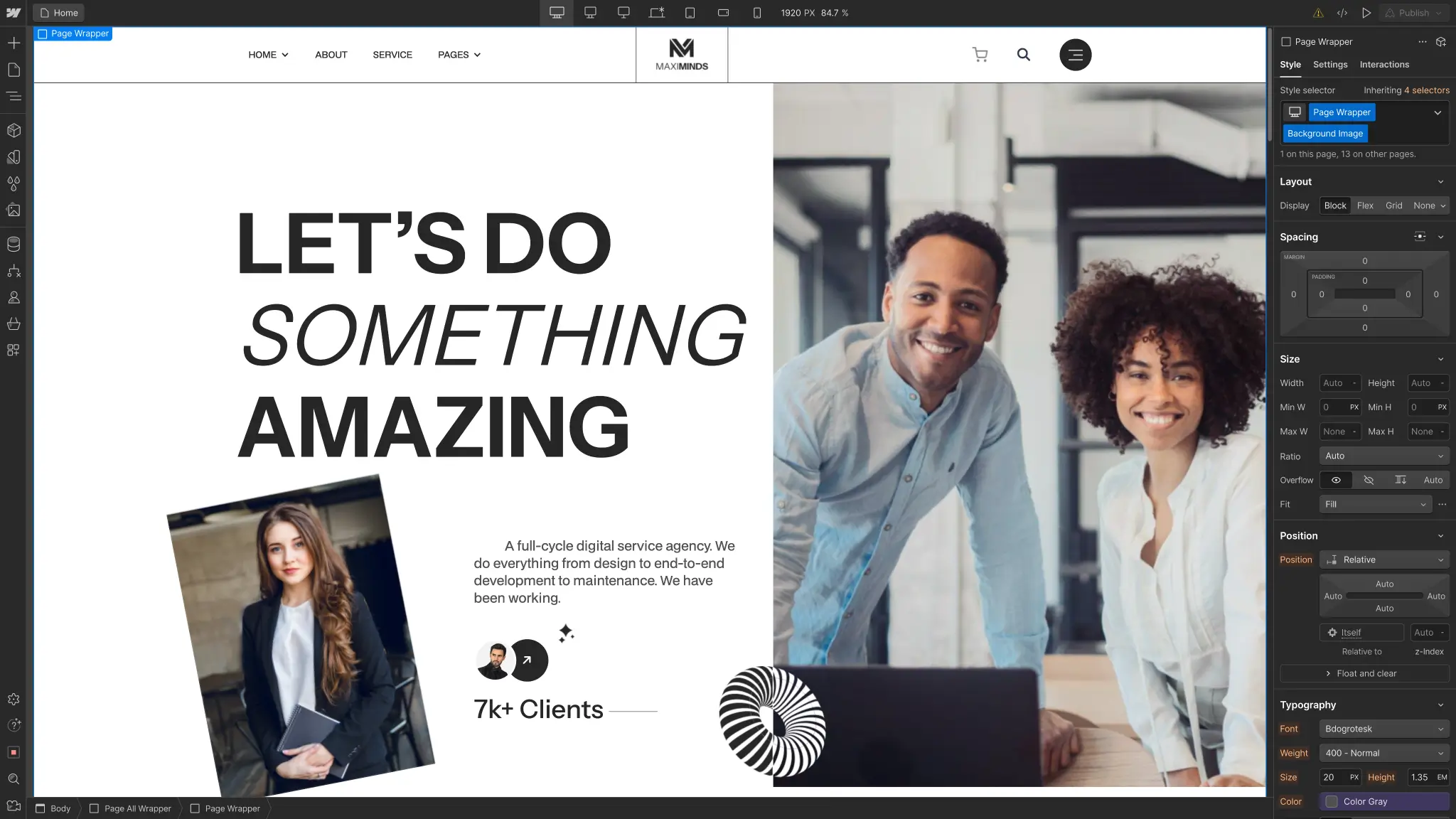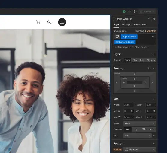 Webflow allows us to be less focused on the development and more on the User Interface that helps us build a unique website for your customers to browse.