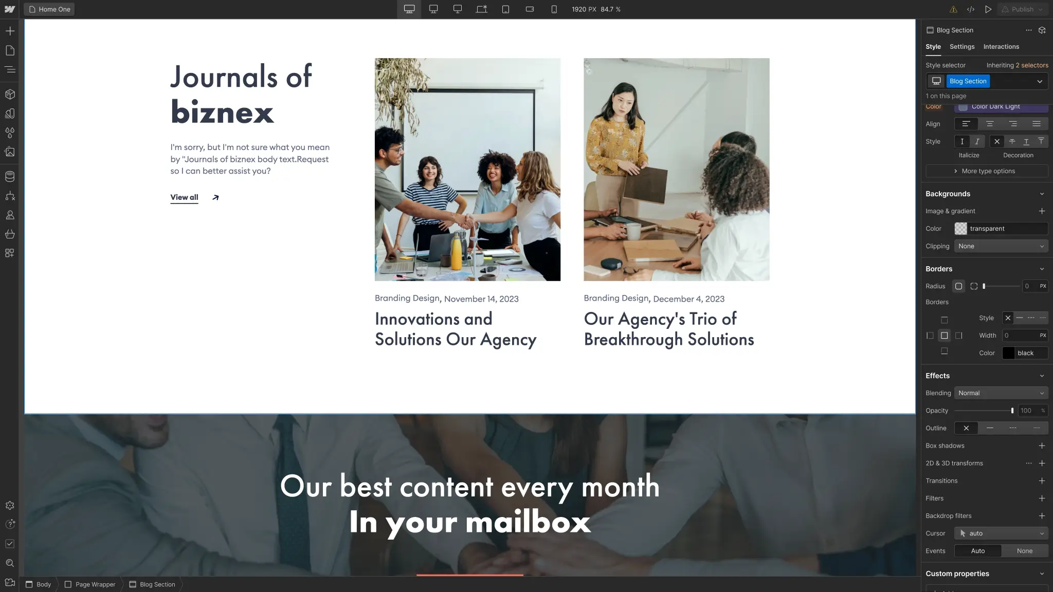 Power multichannel campaigns with a visual CMS and the ability to modify and serve content both in and out of Webflow — plus empower our clients to easily add, edit, and manage content over time.