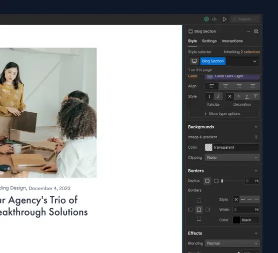 Webflow includes a powerful Content Management System (CMS) that allows users to create and manage dynamic content.